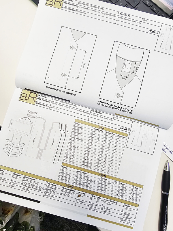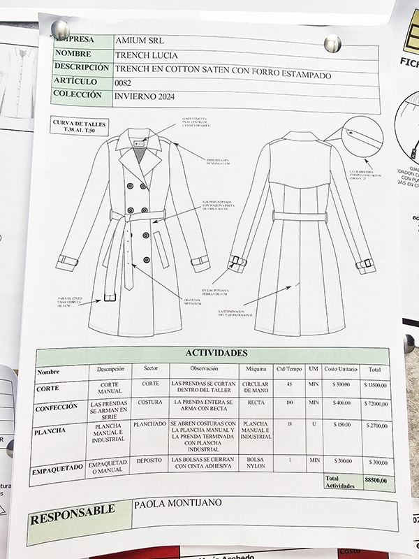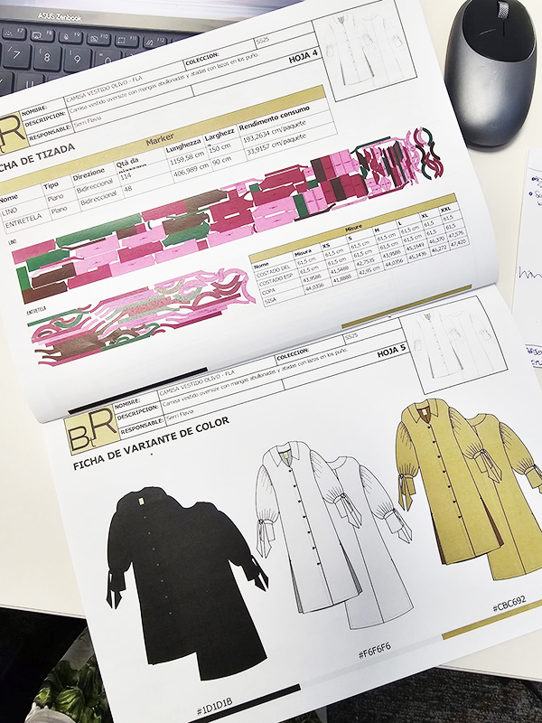- Desarrollo de una base de ficha técnica de prenda simple superior completa con desglose de patrones y tizada/s, con materiales y actividades detalladas y cálculo de precios y consumo automatizado por fórmulas.